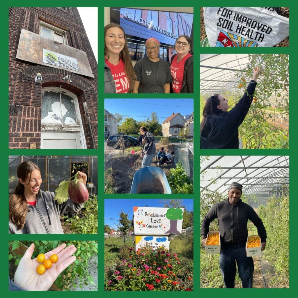 RevLove Farm– Located at 12301 Imperial Ave. Cleveland, OH, United States, Ohio 44120. RevLove Farm is an organization that focuses on growing food, hosting community events and youth programing as well as providing a safe space for healing and pride for their community. RevLove is providing fresh fruits and vegetable to Cleveland Metropolitan School District this school year through a partnership with Feed Our Future and Ohio Schools Council. The team helped Shirley and Jermaine by moving soil to expand their garden beds where they plan to plant garlic and also assisted with fixing up and winterizing the chicken coop.